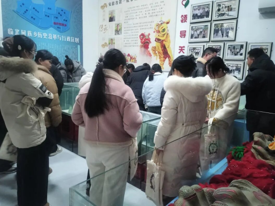 活动结束后,“青骑兵”宣讲员组织青年们参观了临北回族乡民俗文化馆。文化馆内陈列了狮子舞等演出道具以及汤瓶壶、油罐等生活器具,手工艺品及图文史料,生动呈现了临北回族独特的物质与非物质文化遗产。经过沉浸式观展,青年们直观地感受到了临北回族村浓郁的民族风情和独特的村落风貌。