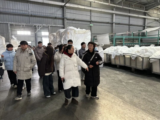 最后一站,青年学子们来到安徽荟佳纺织科技有限公司,探访这家专注于纺织布料与家纺用品的现代化生产企业。厂区的数字化生产线颠覆了传统纺织印象,展示了“智造”对品质与效能的提升。参观过程中,青年学子了解了企业在技术创新、产品创新上的经验与案例,直观地感受到传统纺织产业向数字化、绿色化转型的活力。