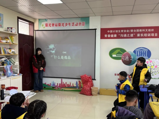 禁毒宣传中,青年志愿者们立足青少年认知特点,采用真实案例剖析、禁毒视频等青少年喜闻乐见的形式,深入浅出讲解毒品的种类、新型伪装形态,以及毒品对个人身心健康、家庭幸福、社会稳定的严重危害。同时,引导小朋友们探讨毒品可能出现的隐蔽场景,寻找科学应对方法,让禁毒知识入脑入心、落地生根。
