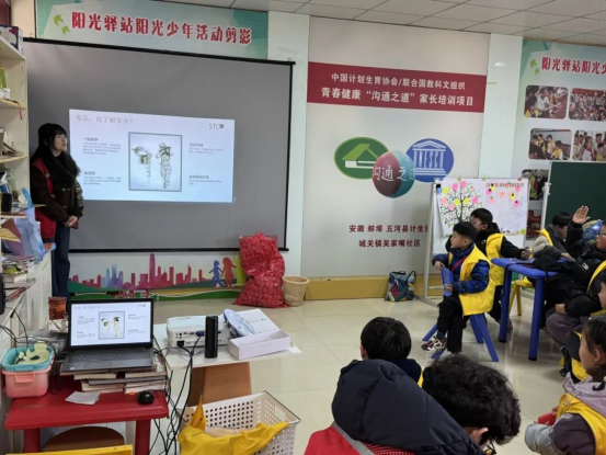 活动还特别设置了心理健康讲座,青年志愿者们结合PPT、画本,聚焦心理情绪疏导、防欺凌等主题,通过互动讨论等形式,重点培养青少年对潜在心理安全风险的识别能力与安全防范意识。志愿者们反复强调遇到危险要第一时间向家长或信赖的成年人求助,并反复强调12355青少年服务热线的功能与使用方法,确保每一位小朋友遇到困难都能及时寻求帮助。