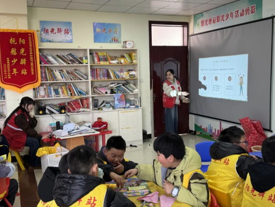 为切实增强青少年群体安全自护的意识和能力,筑牢安全自护堤坝,近日,团县委组织7名返家乡青年志愿者,在吴家嘴社区活动室开展了“12355点亮计划”暨“青春自护 阳光寒假”主题主题教育活动。二十余名青少年通过青年志愿者的精心设计与引导,在轻松互动中学习反电诈、禁毒和心理健康知识。