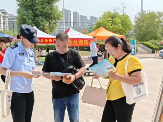 在活动现场,众多完成报到的新生、返校的老生和家长在宣传展架前驻足观看,民警围绕网络谣言的分类、甄别方法、举报方式以及个人信息保护等方面结合生动案例进行细致专业的讲解。同时,与同学们围绕热门网络现象进行深入交流,分析探讨背后的成因与逻辑,为同学们带来“开学第一课”,引导同学们理性上网、积极维护网络清朗空间。