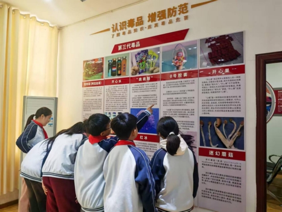 活动现场,禁毒教育基地讲解员通过丰富的图文资料、逼真的毒品模型和详实的案例数据,为同学们系统讲解了毒品的种类、演变历史以及伪装形式。同学们从观看毒品仿真模型、吸食毒品后发生悲剧的现场图片和视频展演中,了解了毒品的种类、特征,直观地了解到了吸食毒品后惨不忍睹的状态,感受到毒品对个人身心带来极度危害,以及毒品给家庭、社会带来的巨大危害。同时,志愿者们向每一位学生发放了禁毒宣传手册,鼓励同学们积极向亲友们宣传和普及禁毒知识。参观尾声,学生们现场用铿锵有力的声音许下“珍爱生命 拒绝毒品”的禁毒宣誓,表达了拒绝毒品、健康成长的坚定决心。