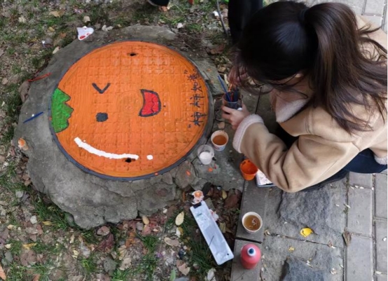 理论学习结束后,青年们立即投入到“彩绘井盖·点亮乡村色彩”实践活动中。大家自发分组,手持画笔和颜料,以井盖为画布,充分发挥创造力和想象力。有的绘制生动活泼的卡通形象,为村庄增添童趣;还有的融入传统文化元素,让井盖成为传播乡风文明的载体。在大家的巧手绘制下,一个个普通的井盖变成了色彩斑斓的艺术品,既美化了村庄环境,也展现了新时代青年积极投身乡村建设的热情。